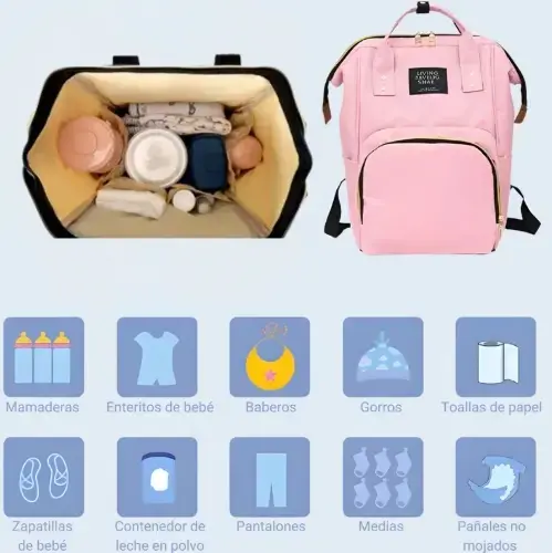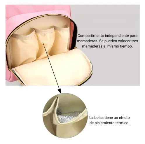 Mochila maternal premium rosa - térmica, reforzada y multibolsillo
